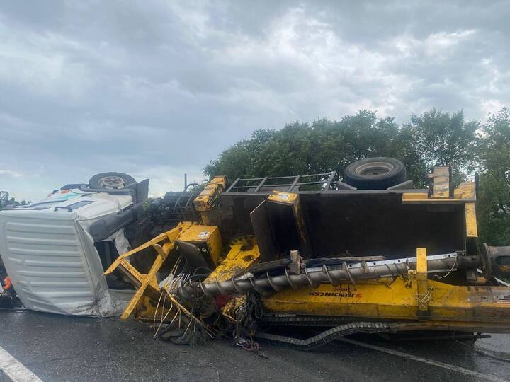 В результате ДТП водитель сломал предплечье. У машины смята кабина. По факту аварии проходит административное расследование.