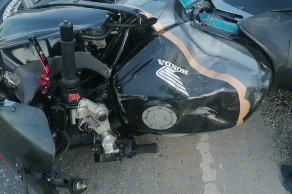 Мотоциклист упал и наехал на автомобиль Honda Jade Hybrid под управлением мужчины 1985 года рождения, который остановился перед пешеходным переходом.