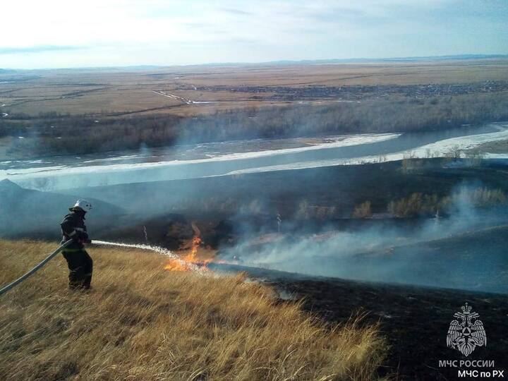 На следующий день крупный пал травы тушили в Усть-Абаканском районе. С ним боролись добровольцы из села Весеннее, аала Чарков и республиканские пожарные.