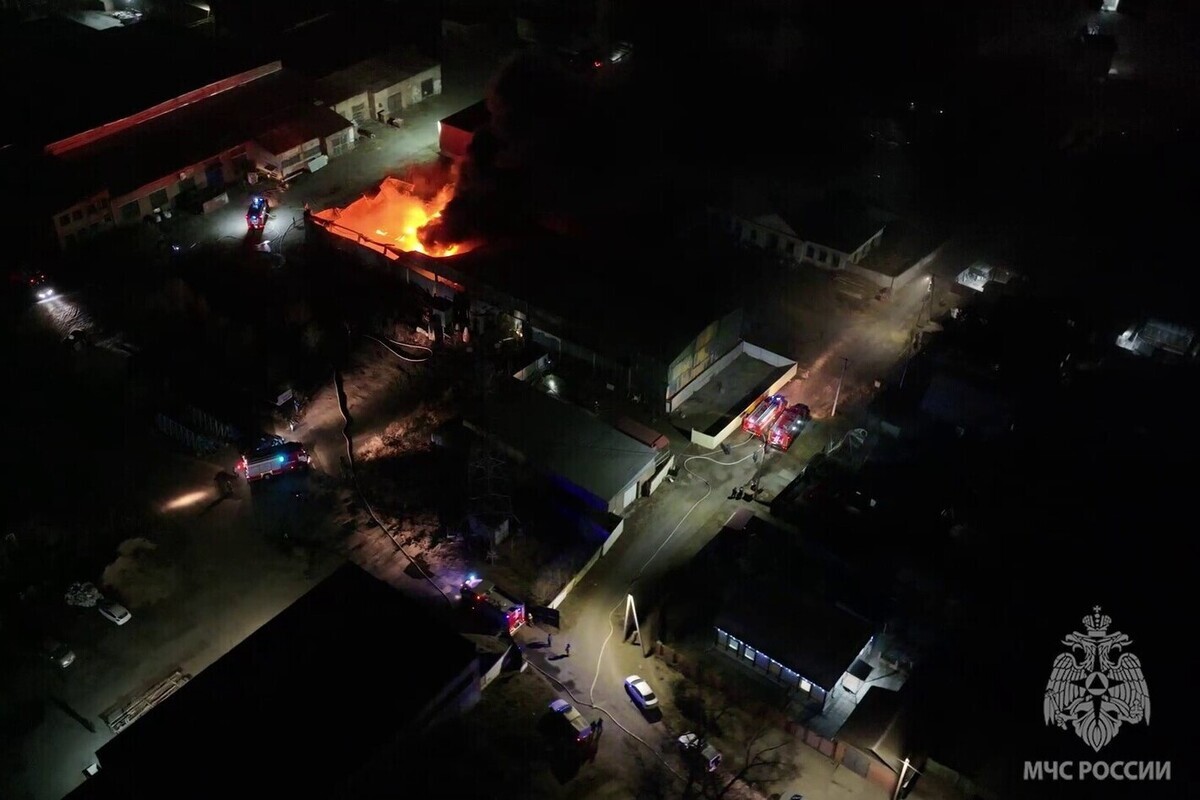 Поздним вечером 27 декабря в Абакане произошел пожар. Горел склад на территории частного завода.