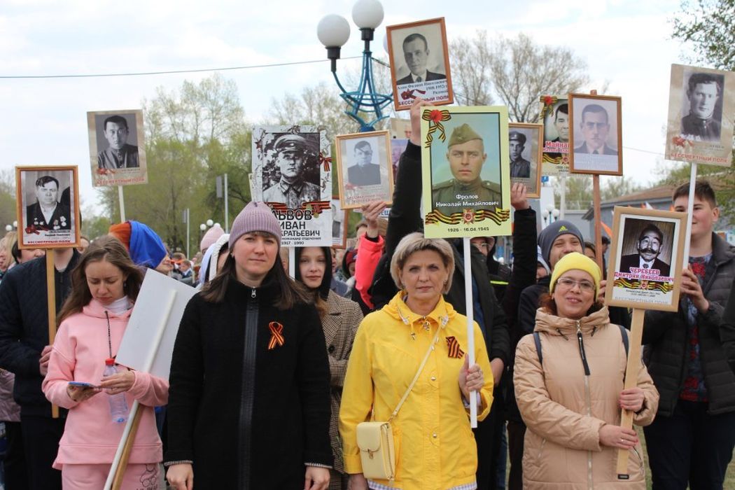 Сегодня огромная колонна с портретами родственников, воевавших на фронтах Великой Отечественной войны, прошла от спорткомплекса имени Булакина до Вечного огня в Парке Победы.