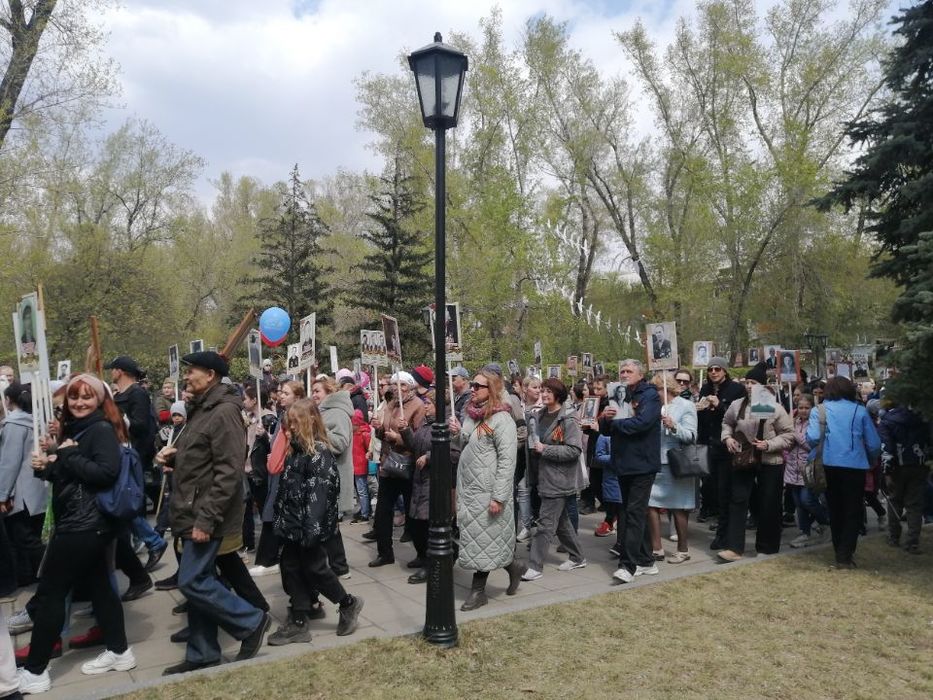 Сегодня огромная колонна с портретами родственников, воевавших на фронтах Великой Отечественной войны, прошла от спорткомплекса имени Булакина до Вечного огня в Парке Победы.