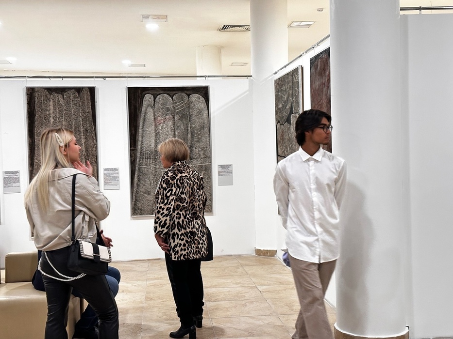 Выставка состоит из двух частей. На одной из них посетители смогли увидеть коллекцию эстампажных копий древних наскальных рисунков, изваяний и образцов енисейской рунической письменности.