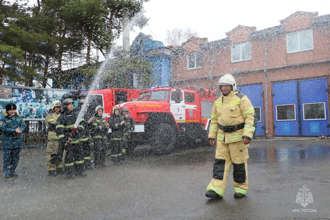 Пожарного из Хакасии проводили на заслуженный отдых, устроив душ на прощание