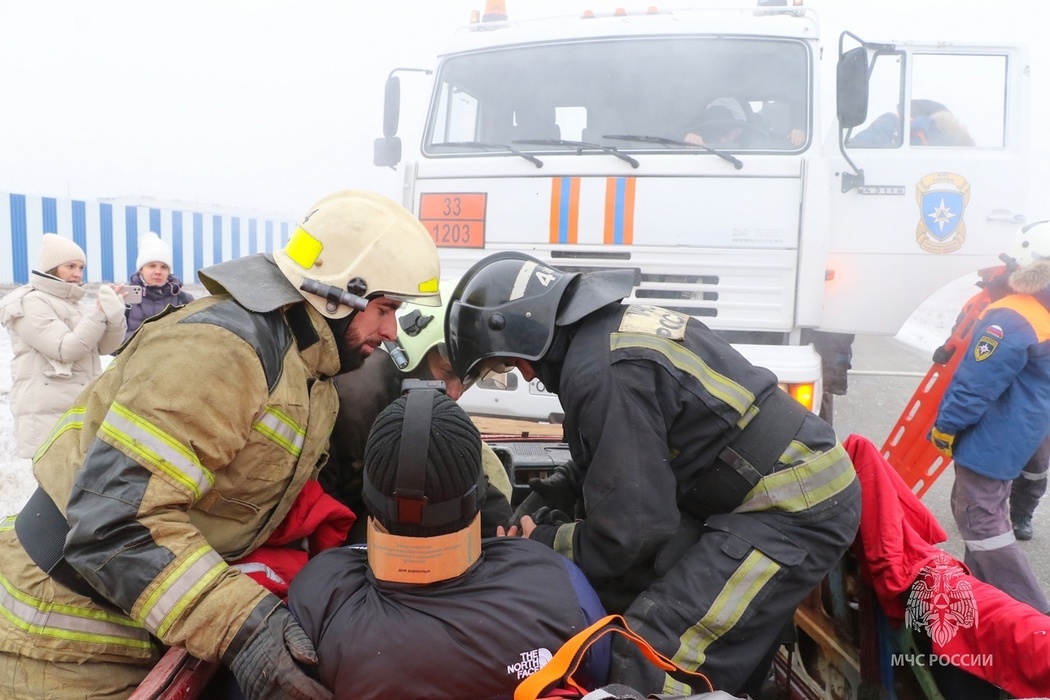 Пожарные устроили пенную атаку для тушения горящего топлива и вытащили водителя легковушки. Представители Южно-Сибирского поисково-спасательного отряда МЧС России эвакуировали условных пострадавших из автобуса и бензовоза.