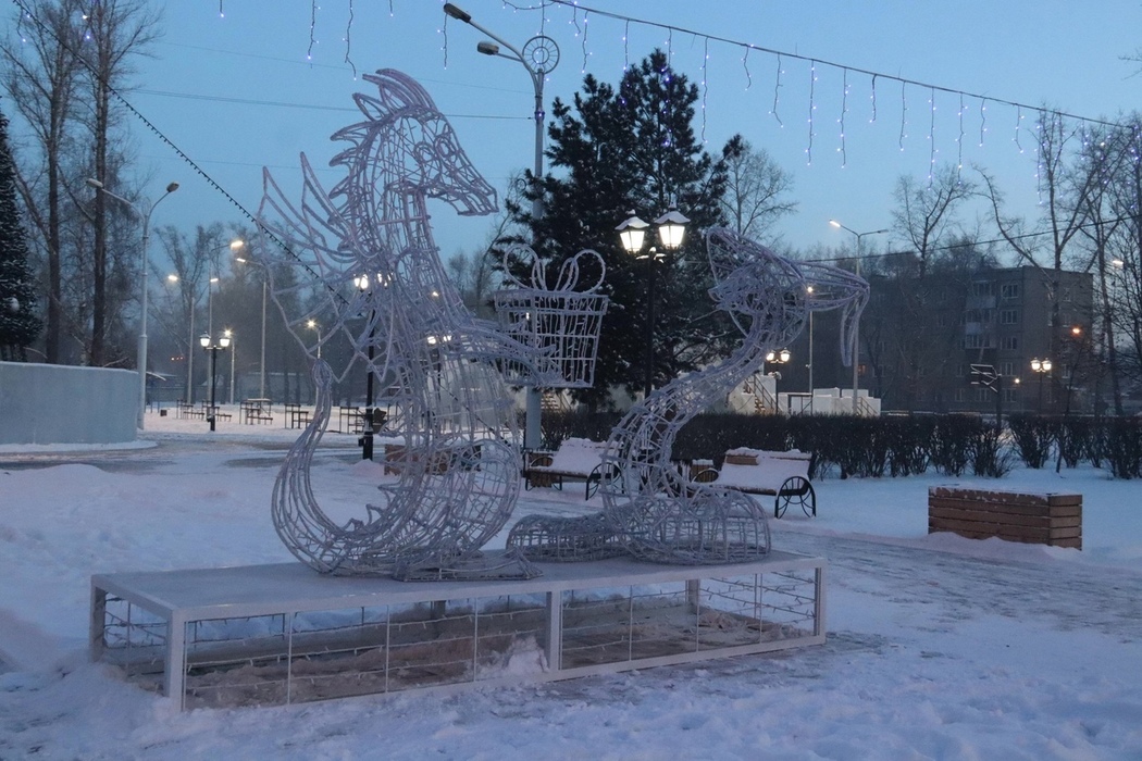 Парк украсят Дракон и Змея, которые разместят во входной группе со стороны улицы Пушкина. Также сейчас на месте делают ледяные горки, а вокруг центрального праздничного дерева уже возвели ледовый каркас.
