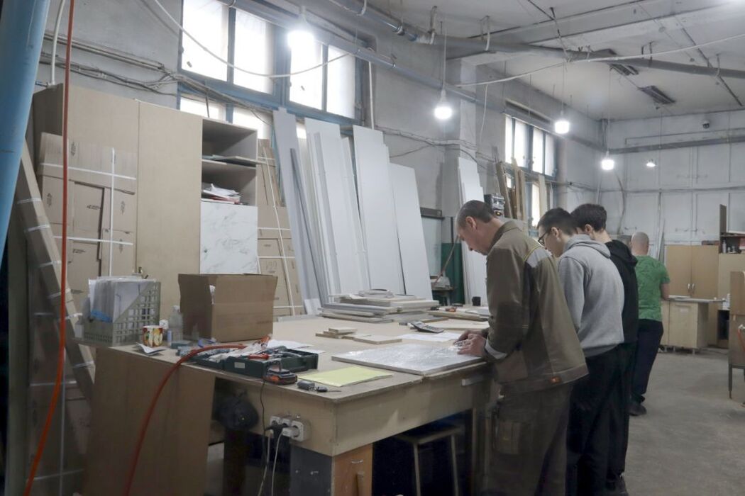 В цехе, как и положено мебельному производству, целый мир, пахнущий деревом и наполненный шумом станков. Чтобы не остаться без рабочих, руководители организовали на производстве практику для студентов. Наставник делится с ними своим особым чувством дерева, учит читать чертежи, видеть и понимать конструктивные особенности, в общем, помогает юношам стать такими мастерами, для которых изготовление мебели – не просто заработок, а творчество,