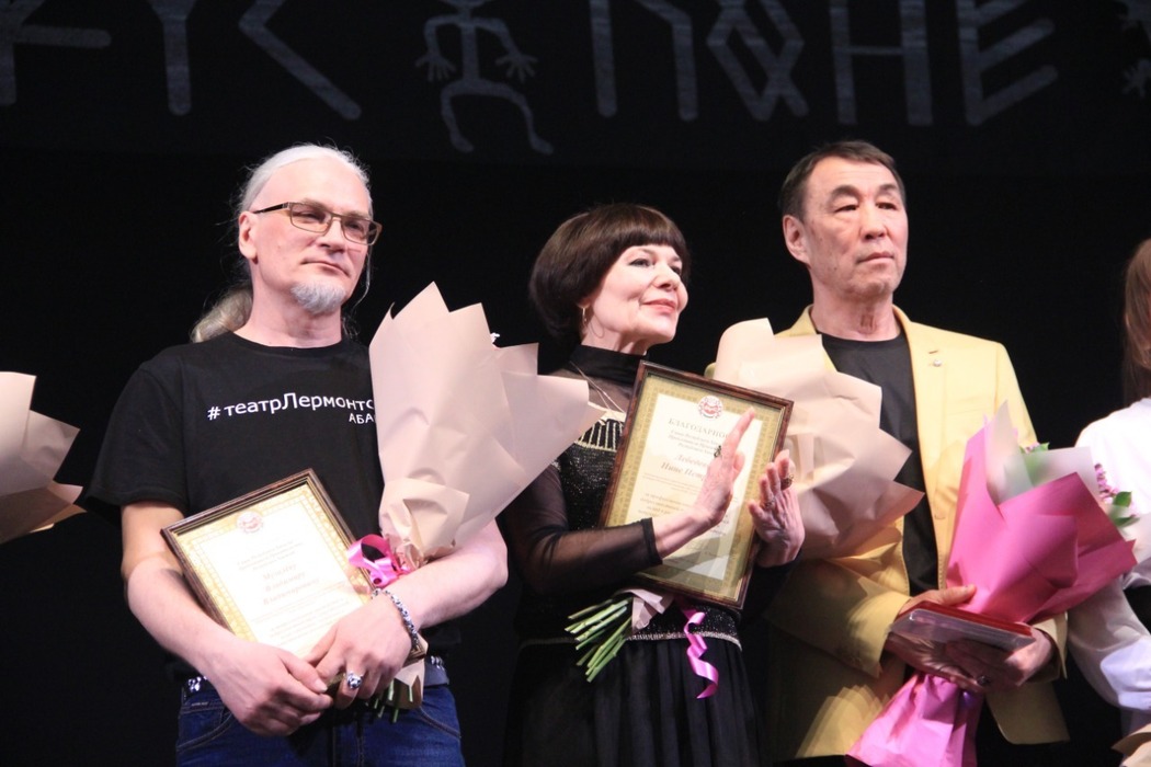 Она вручила главные награды вечера. Звание заслуженного артиста Хакасии присвоено Сергею Доможакову, ведущему мастеру сцены Хакасского национального драматического театра имени А.М. Топанова. Звание заслуженного работника культуры Хакасии присвоено Ольге Горнак, главному инженеру Хакасского национального театра кукол «Сказка» и директору Хакасского национального драматического театра имени А.М. Топанова Владимиру Чустееву.