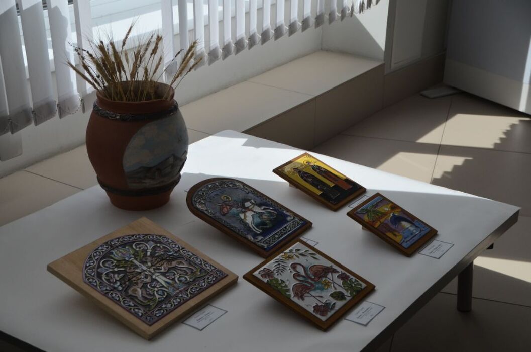 Экспозиция работ членов региональной организации «Союза художников России» впечатляет разнообразием. Здесь картины, написанные гуашью, акварелью, маслом, акрилом и черным карандашом, а еще мозаика из камня, пого из бумаги, литья и акрила, изделия из глины, глазури, стекла и перегородчатой горячей эмали.
