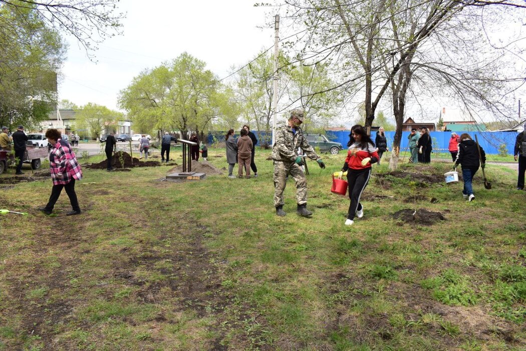 Сегодня в Усть-Абакане прошел субботник. Неравнодушные горожане, волонтеры и чиновники высадили десятки саженцев в новом сквере памяти Пирятинской дивизии.