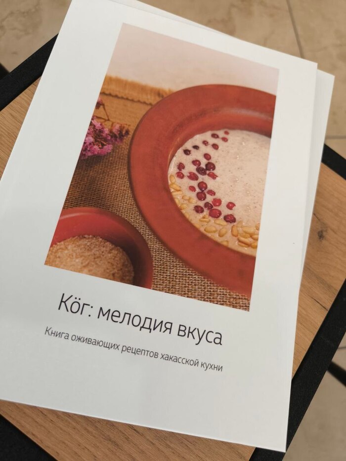 В главном музее Хакасия состоялась презентация «Книги оживающих рецептов хакасской кухни: «Кӧг: мелодия вкуса». Это проект талантливого фотографа Анастасии Пачиной. Его признали победителем III республиканского конкурса в области творческих (креативных) индустрий в номинации «Литературная и издательская деятельность».
