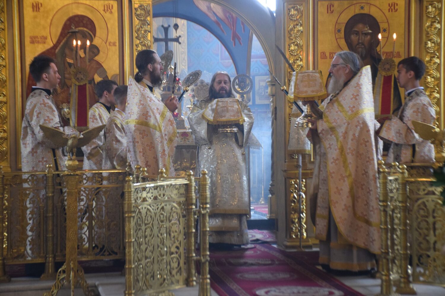 В день праздника Вознесения Господня владыко совершил божественную литургию также в Спасо-Преображенском кафедральном соборе. Все желающие смогли причаститься.