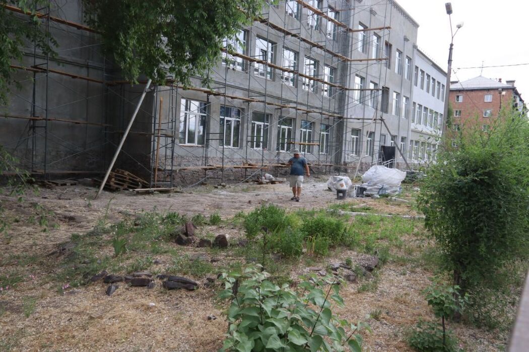 Рабочих хватает, но скорость черепашья: капремонт в 10-й школе Абакана идет с отставанием