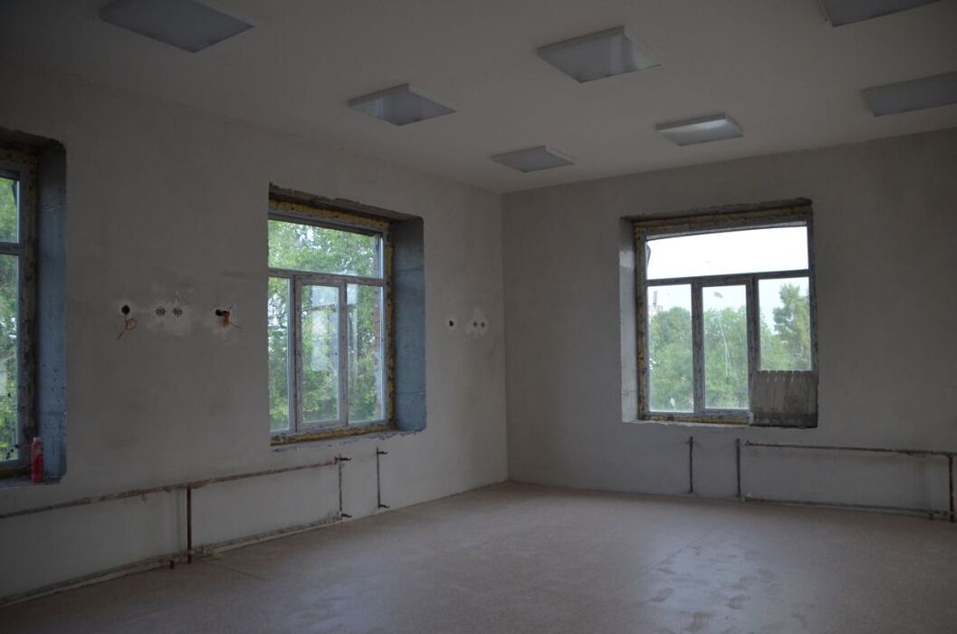 Ожидается, что ремонт на третьем этаже школы завершат к 16 июля. Начинается укладка линолеума, скоро начнут окрашивать стены и устанавливать двери. Впереди большой объем фасадных работ, но мешает непогода.