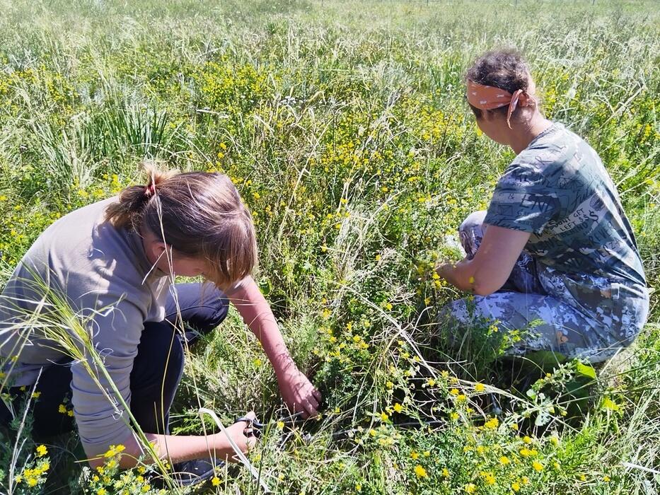Специалисты определяют продуктивность травостоя, собирают воду в скважине для химического анализа и пробы почвы, подготавливают и корректируют геоботанические карты земли.
