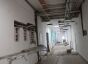 Сейчас основные работы идут на первом этаже. Здесь завершают отделку дверных проемов, оклеивают стены обоями. В спортзале монтируют спецпокрытие для пола, в пищеблоке уже уложили керамическую плитку и залили пол.