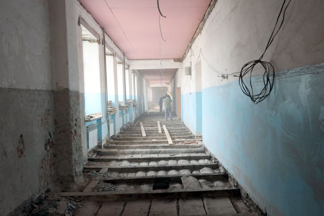 На первом этаже завершают укладку плитки на полу и переходят на стены. На лестничных маршах уже оштукатурили на один раз. В актовом зале залили полы, покрасили стены и потолок, рассказали в мэрии Абакана.