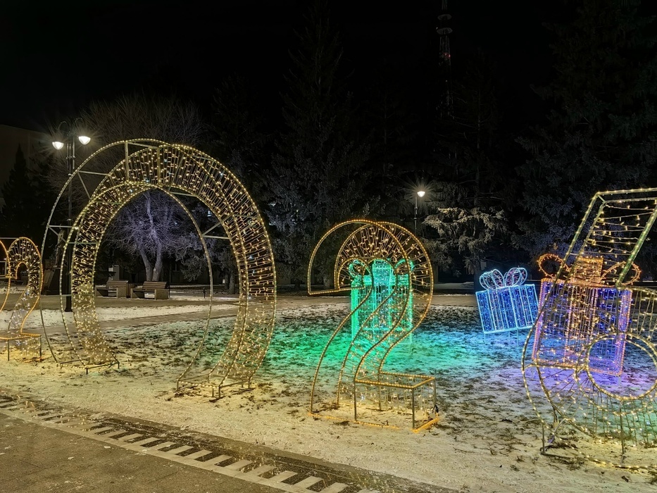 Просто прогуляться в городе можно в разнообразных парках, аллеях, скверах, а также по проспекту Ленина, где пешеходный путь освещают гирлянды. Кроме того, в столице Хакасии разместили праздничные иллюминации, которые помогут обзавестись красивыми новогодними фотографиями.
