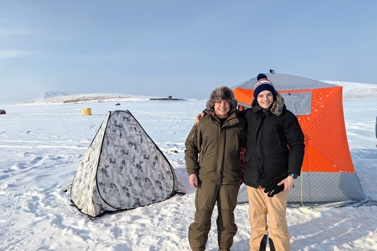«Ходил по палаткам и сравнивал уловы. А потом захотел попробовать поймать сам. Немного помогли и вот — первый окунь уже в руках. Молодец. А чай с домашними ватрушками в зимней палатке – особенно вкусный. Андрей в восторге – делится семейным счастьем спикер республиканского парламента.