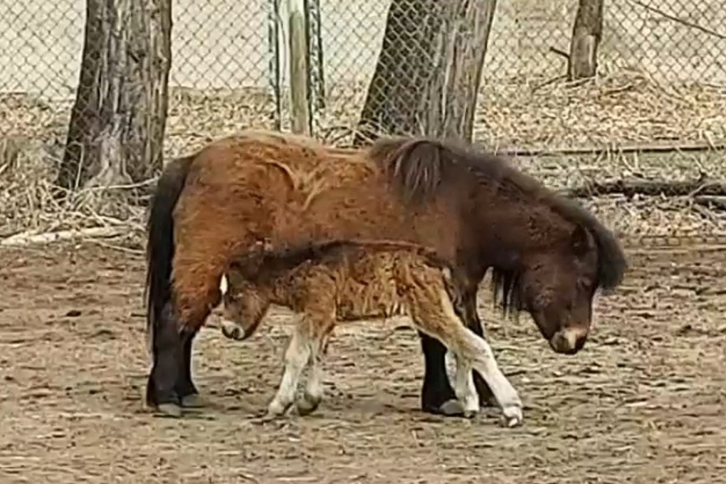 Накануне Абаканский зоопарк поделился кадрами первых шагов трехнедельной пони. Маленькая Лиза опробовала свои силы рядом с мамой Сюзанной, сообщает Центр живой природы.