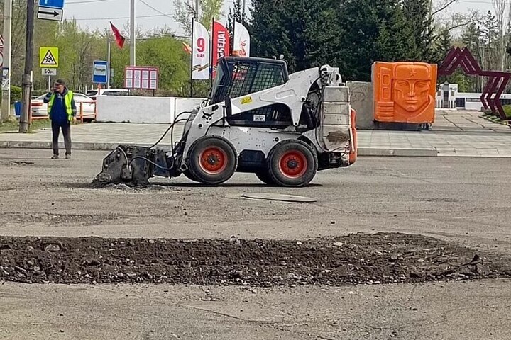 Вот и в Усть-Абакане начали заделывать ямы на площади, где 9 мая пройдет торжественный парад. Техника работает с утра, сообщили в местной администрации.