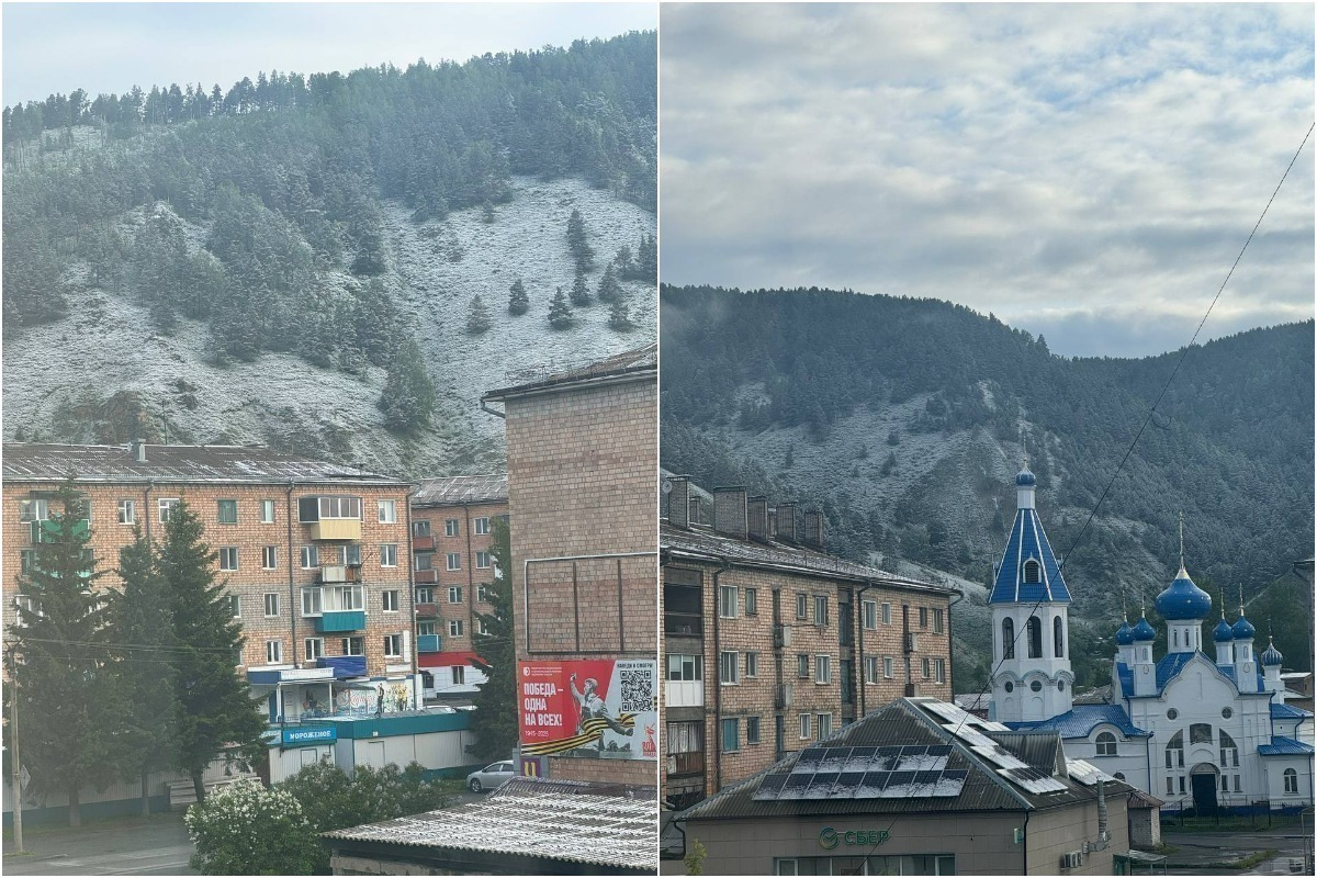 В соцсетях жители Хакасии сообщили, что поля и обочины дорог между Саяногорском и Абаканом засыпало снегом. Под Абаканом выпал град размером с горох.