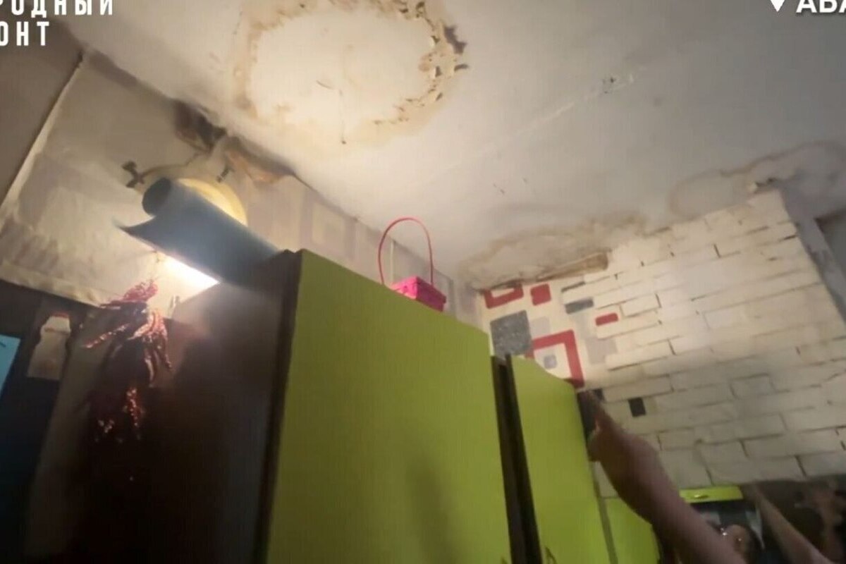 Также от постоянной сырости грозят рухнуть стены, трещащие по швам. При этом в общежитии живут семьи с детьми, пенсионеры и инвалиды.