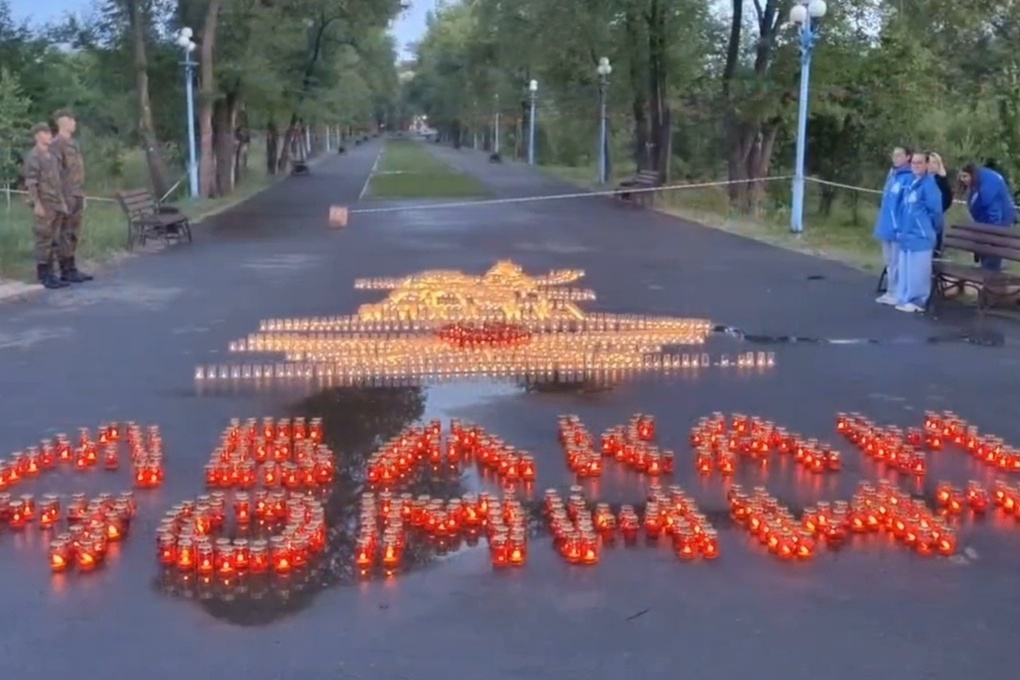 В Георгиевском саду абаканского Парка культуры и отдыха зажгли «Огненную картину войны». Почти полторы тысячи свечей загорелись в память о героях битвы, сообщает администрация города.
