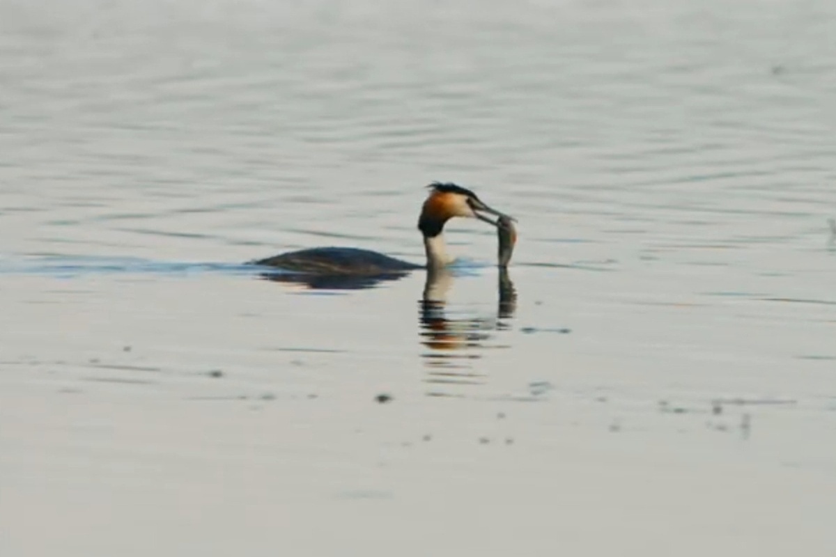 Жителям Хакасии показали, как чомга кормит собственных птенцов. Эти пернатые любители рыбы, моллюсков и разных насекомых, сообщает пресс-служба Минприроды РХ.