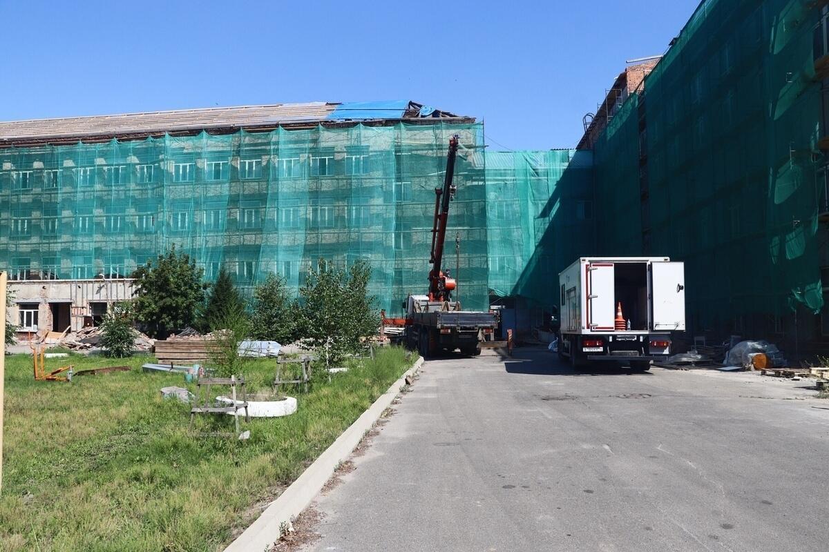 Также в начале следующей недели в школу привезут образцы фасадного декора. Продолжается демонтаж кровли на пристройке со стороны проспекта Ленина. После завершения этого этапа подрядчик планирует поставить штукатурные звенья рабочих на первом и четвертом этажах.
