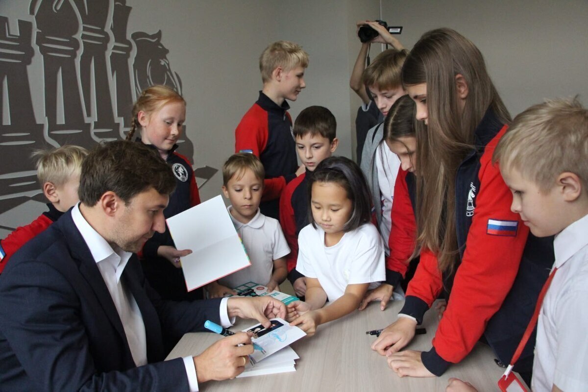 На открытии шахматного царства в самой новой школе столицы Хакасии присутствовал и международный гроссмейстер, многократный чемпион мира по шахматам, президент Федерации шахмат Московской области Сергей Карякин. В прошлом году его имя включили в список известных российских спортсменов, работающих в органах власти. Так, Карякин стал первым в истории России сенатором-гроссмейстером. Сегодня он является сенатором Совфеда Федерального собрания России от Крыма.