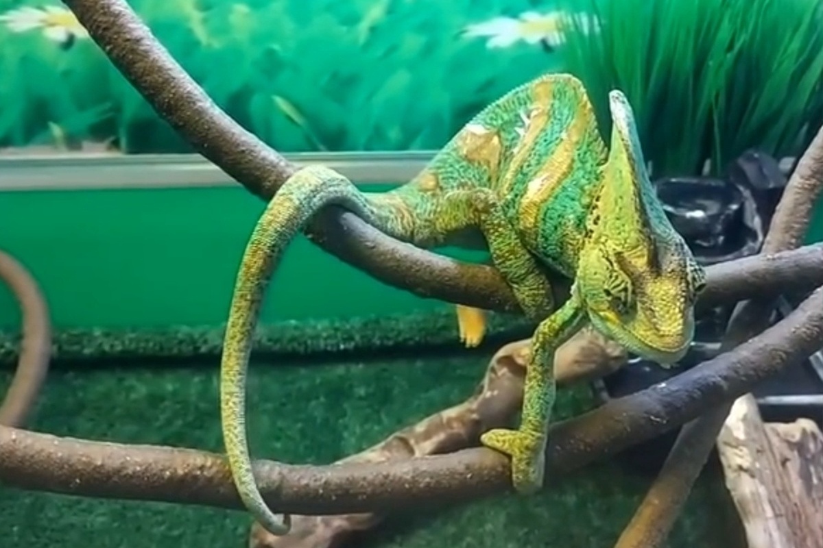 В объектив сотрудников Абаканского зоопарка попал хамелеон, являющийся одним из самых популярных обитателей экзотариума, сообщает Центр живой природы.