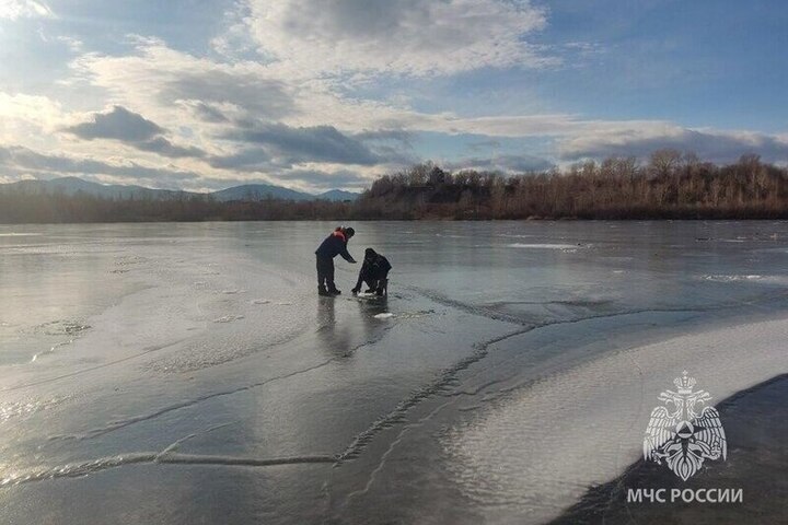 В центральных и южных районах Хакасии пока шуга. Кое-где лед вырос до двух-пяти сантиметров. Выходить на него очень опасно – хрупкий.