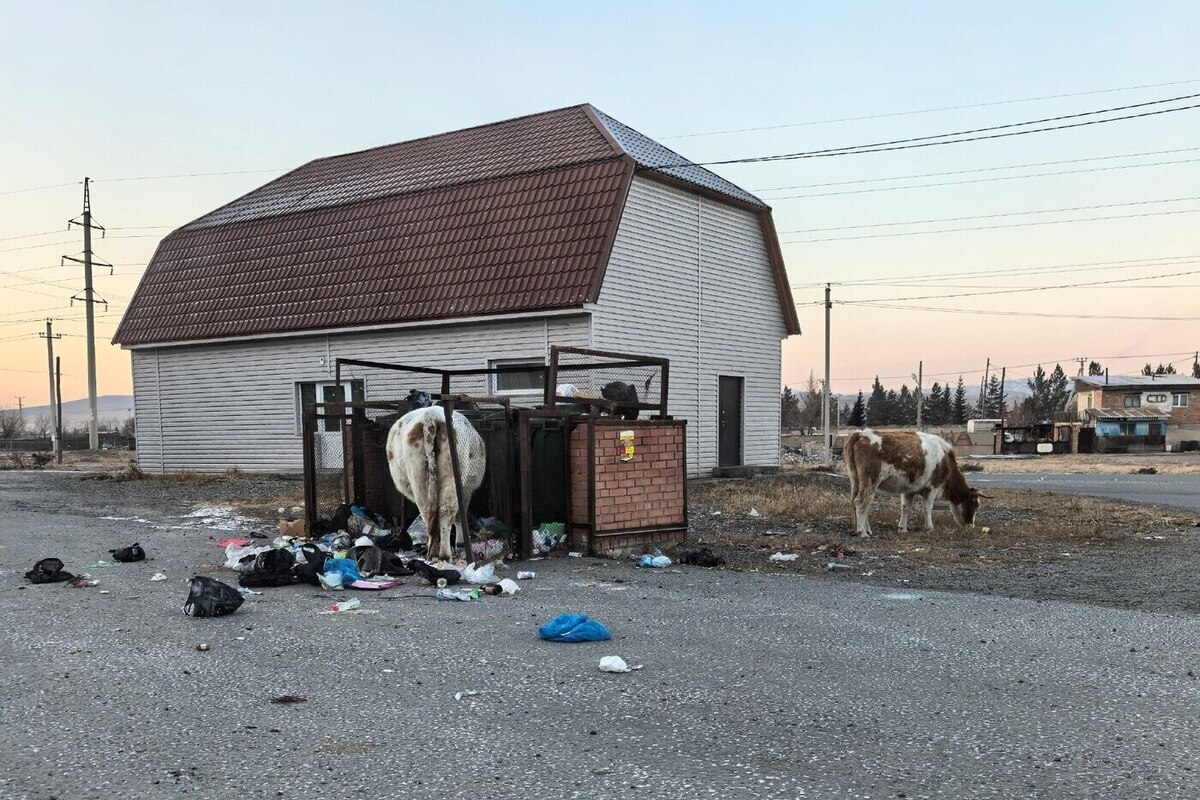 На опубликованном в официальном телеграм-канале райадминистрации две буренки роются в пакетах с мусором, которые жители оставили около баков. При этом у жильцов многоквартирного дома по улице Школьная в селе Аскиз эти коровы вопросов уже не вызывают и даже не удивляют: животных здесь видят часто.