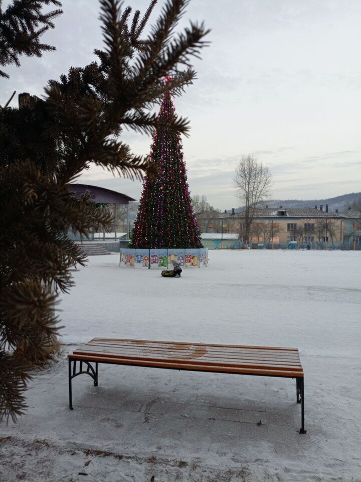 Совсем скоро площадь Сорска заиграет праздничными огнями. Елка здесь уже стоит, каток принимает гостей.