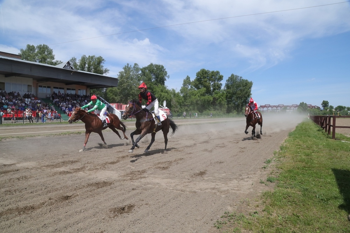 Сегодня в Абакане стартовали соревнования среди лошадей рысистых и верховых пород. Всего восемь заездов, в том числе и на призы в честь 80-летия Победы.
